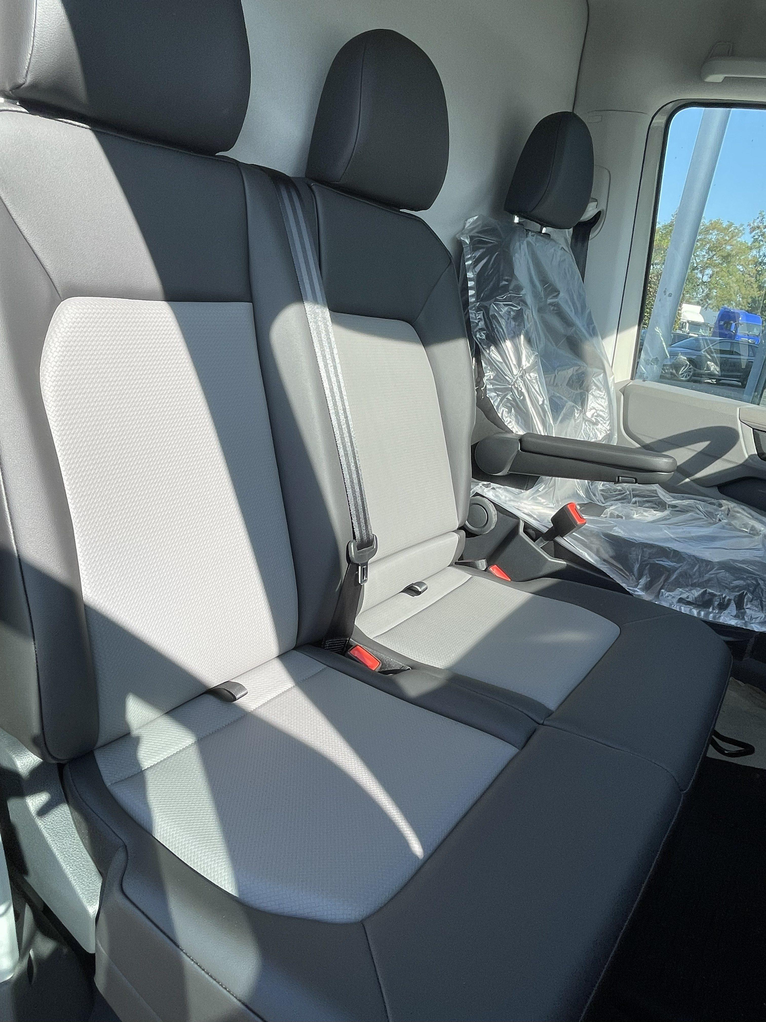 Stoelen: bestuurder “ergoComfort” luchtgeveerd, verwarmd; dubbele passagiersbank met opbergruimte en neerklapbare rug